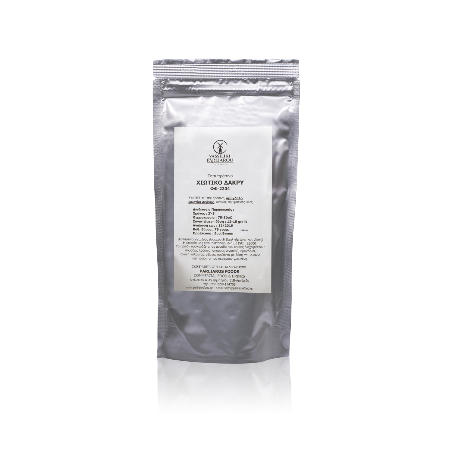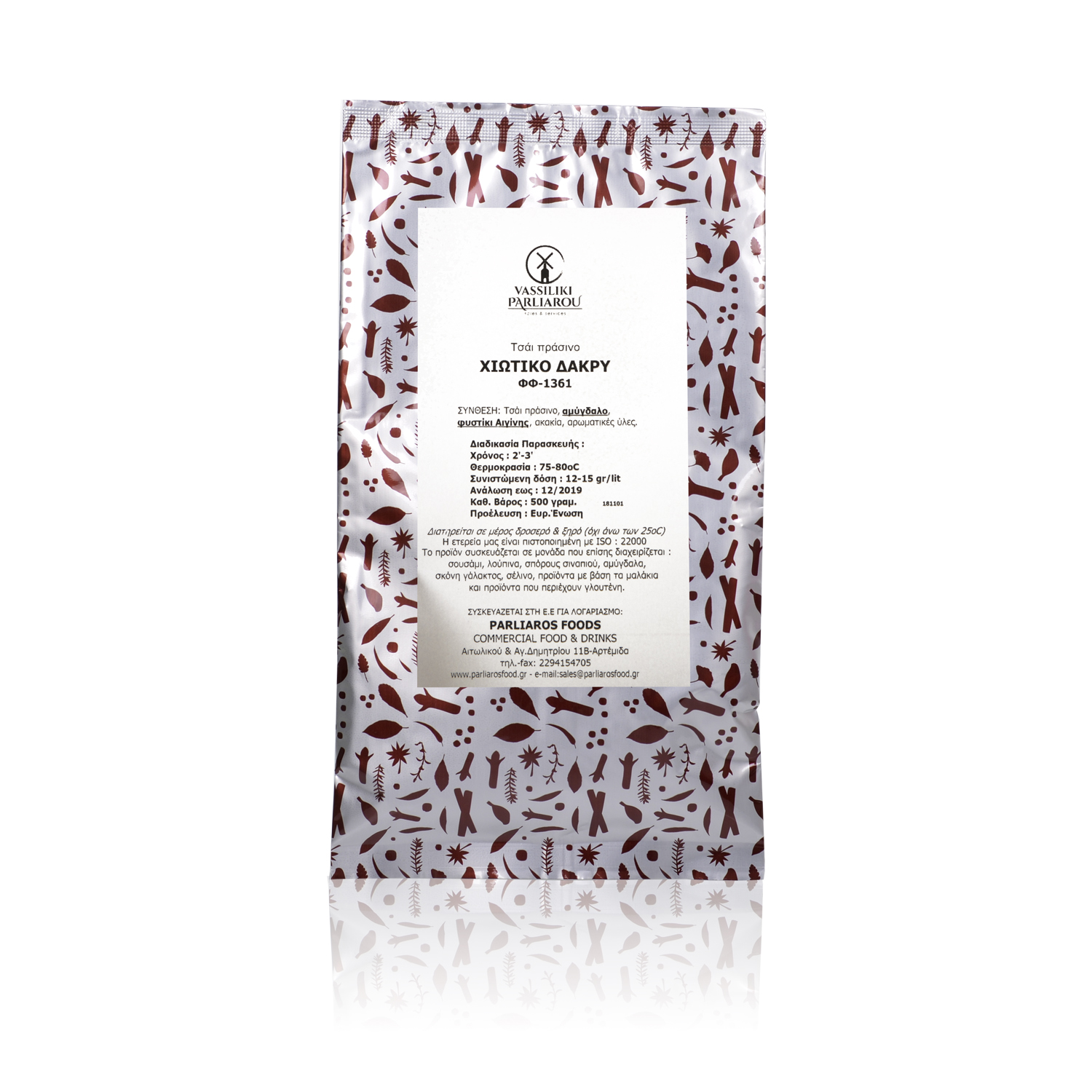 Very aromatic blend with Bancha green tea, Aegina peanut, almond, acacia flowers, mastic flavor